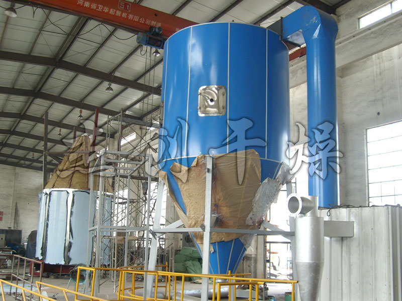 該生產線由供料系統、介質循環系統、空氣加熱凈化系統、干燥塔系統、收料系統、控制系統等多個系統整合而成。主塔系統集中了目前噴霧干燥工程的所有高端技術,噴干機組的收料系統由一級旋風分離器+布袋除塵器組合形成。一級旋風采用高氣量高xiao率旋風進行收集,其收粉率能達到96%左右分,而布袋除塵器是針對蛋白粉類除塵專門設計的優化設備,能使物料與風進行分離并沉降,布袋為拒水防油防靜電布袋,過濾目數可達500目以上。