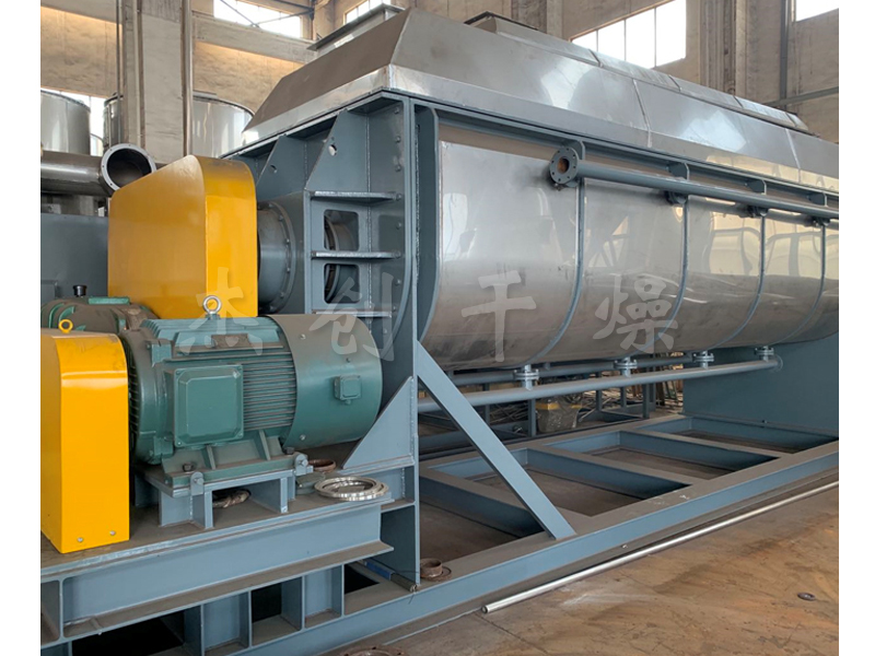 空心軸上密集排列著楔型中空漿葉,熱介質(zhì)經(jīng)空心軸流經(jīng)漿葉。單位有效容積內(nèi)傳熱面積很大,熱介質(zhì)溫度從-40℃到320℃,可以是水蒸汽,也可以是液體型:如熱水、導熱油等。間接傳導加熱,沒有攜帶空氣帶走熱量,熱量均用來加熱物料。熱量損失僅為通過器體保溫層向環(huán)境的散熱。楔型漿葉傳熱面具有自清潔功能。物料顆粒與楔型面的相對運動產(chǎn)生洗刷作用,能夠洗刷掉楔型面上附著物料,使運轉(zhuǎn)中一直保持著清潔的傳熱面。漿葉干燥機的殼體為W型,殼體內(nèi)一般安排二到四根空心攪拌軸。殼體有密封端蓋與上蓋,防止物料粉塵外泄而發(fā)揮作用。