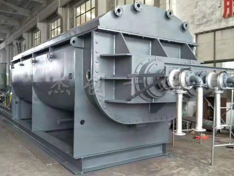 ??物料由進料口送入干燥機,工作介質在本體外殼和空心軸之間流動,通過C型夾套、空心軸和軸上焊接的空心盤片傳遞熱量,物料被間接加熱干化,產(chǎn)生的水蒸氣聚集在干燥機的穹頂,由載氣帶出干燥機??招谋P片與軸基本垂直,通過盤片上的推進/攪拌器的作用,對物料進行攪拌、推進,不斷更新干燥面,從而實現(xiàn)干燥的目的。用蒸汽間接加熱,通過攪拌物料使水分更快蒸發(fā),進行干燥。